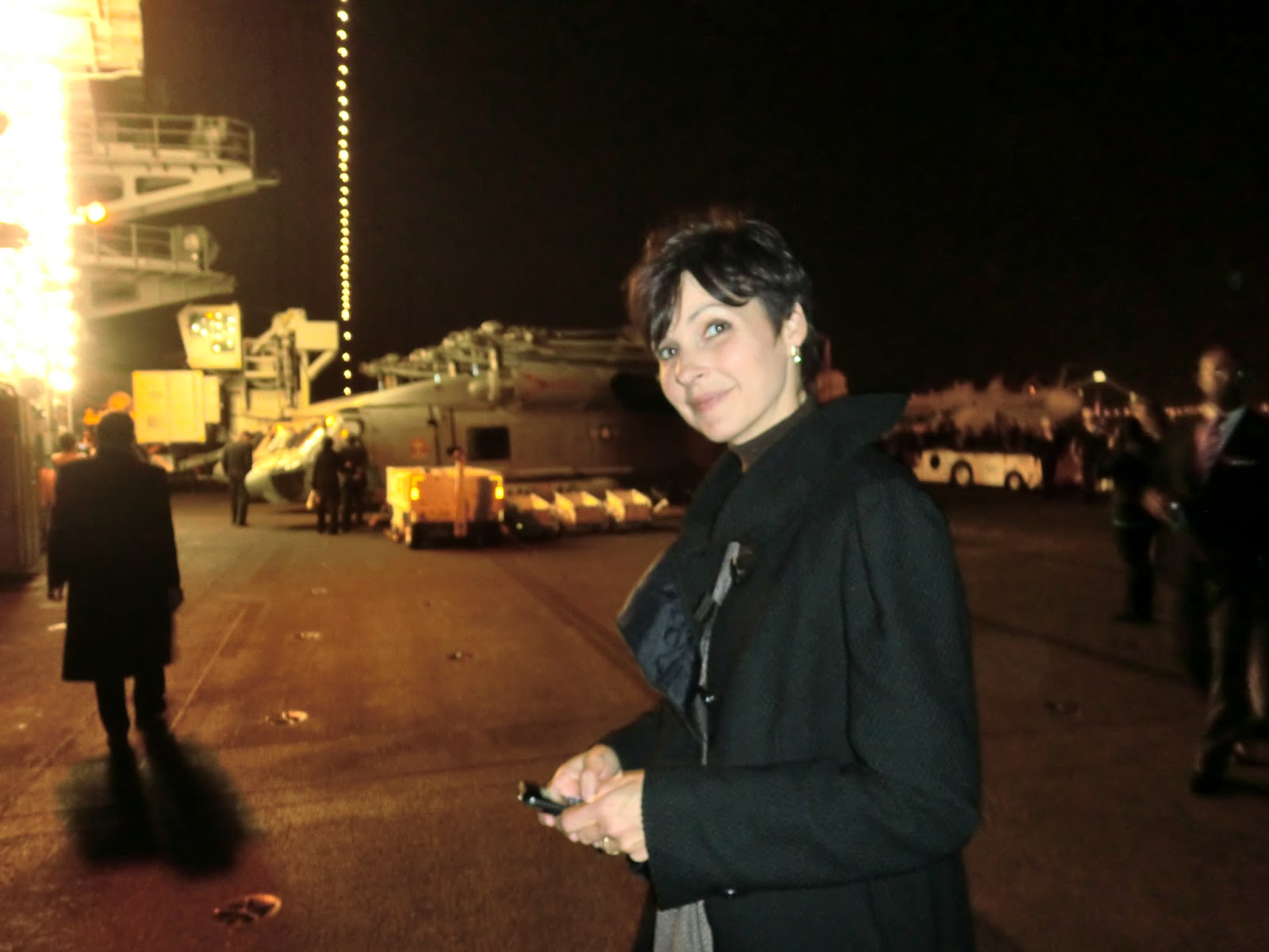 One of the highlights of the evening was everyone heading out onto one of the aircraft elevators for a trip up to the flight deck. Yes, I got to fulfill my dream of having a glass of wine in one hand and my beautiful wife on my arm as we walked past rows of fighter planes. My childhood always comes back in these moments as most American boys my age wanted to be a fighter pilot at some point as a kid.