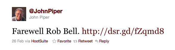 * Evangelical heavyweight John Piper famously tweeted, “Farewell, Rob Bell”